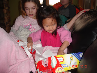 What is very interesting is we pulled out and watched the tape of our time in China. On the tape there is a section of her singing in her crib. I taped it in the dark because it was priceless...well when that part of the tape came on Mia-Faith started singing the exact same song. Now I am starting to wonder if I should enroll her in a preschool Chinese class that starts January 3rd. The class is 2 days a week. Will this confuse her? Add to her delay? Help her?